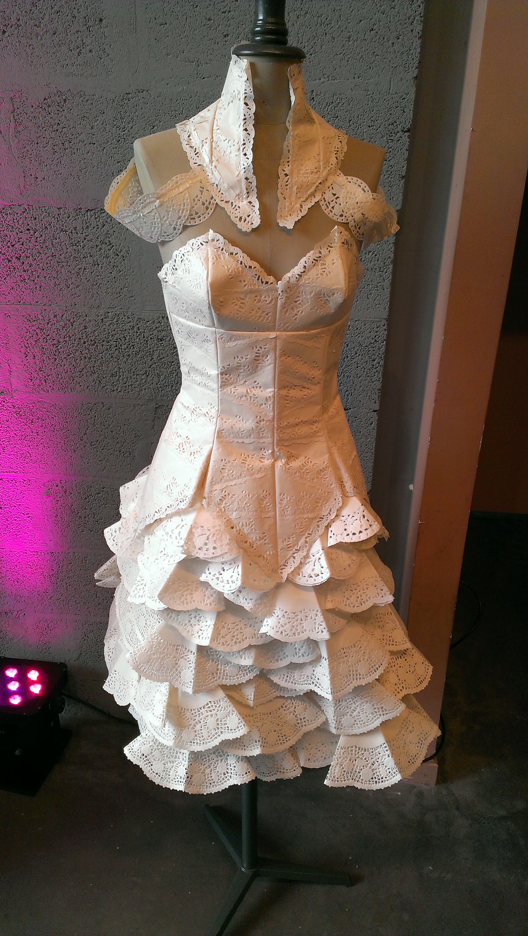 En parallèle se déroulait l’exposition Paper Dress : confectionnées par l’atelier du Jardin de Mode et les créateurs, chaque robe est entièrement constituées de papier.